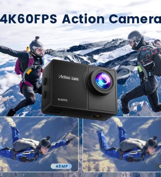 • Sale! 4K 60FPS Action Camera with 64GB Card-48MP Waterproof Camera,40M Underwater Camera,8X Zoom,EIS Stabilization,WiFi,Remote Control,MotorcycleCamera with 2 Rechargeable Batteries
